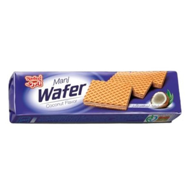 Savor the delicate crunch of Naderi Coconut Wafers, layered with a subtle, sweet coconut flavor. This 150g pack is perfect for tea time, dessert accompaniments, or as a light, tasty snack anytime. A classic treat for coconut lovers.
