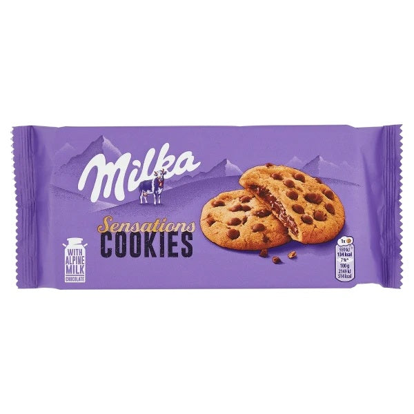 Soft-baked cookies filled with rich Milka Alpine milk chocolate chunks, offering a gooey, indulgent treat perfect for any sweet craving.