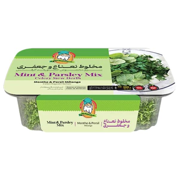 Add fresh flavor to your Persian dishes with Amoo Mint & Parsley Mix. This 300g pack contains a perfectly balanced blend of mint and parsley, ideal for soups, stews, salads, rice dishes, or garnishes. Convenient, aromatic, and ready to enhance the taste of your meals.
