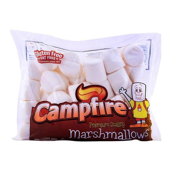 Campfire Marshmallows Regular White (300g) are soft, fluffy marshmallows perfect for roasting over a campfire or adding to your favorite treats like s'mores, hot chocolate, or desserts. Their classic sweet flavor and airy texture make them a delicious snack.