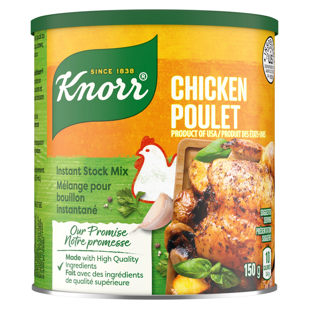 Knorr Chicken Instant Stock Mix (150g) is a convenient way to add a rich chicken flavor to your soups, gravies, or sauces. Just mix with water for a delicious base in your dishes.