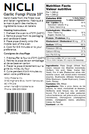 Savor the rich flavors of this stone-baked 10-inch Garlic Mushroom Pizza, handcrafted locally in Canada. Topped with fresh mushrooms, garlic, and melted cheese, it’s frozen for optimal freshness and ready for a quick, delicious meal at home.