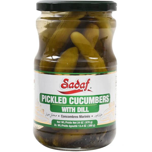 Sadaf Pickled Cucumber with Dill (670gr) – Crisp cucumbers infused with the aromatic flavor of dill, offering a refreshing and tangy taste, ideal for pairing with a variety of dishes or enjoying as a snack.