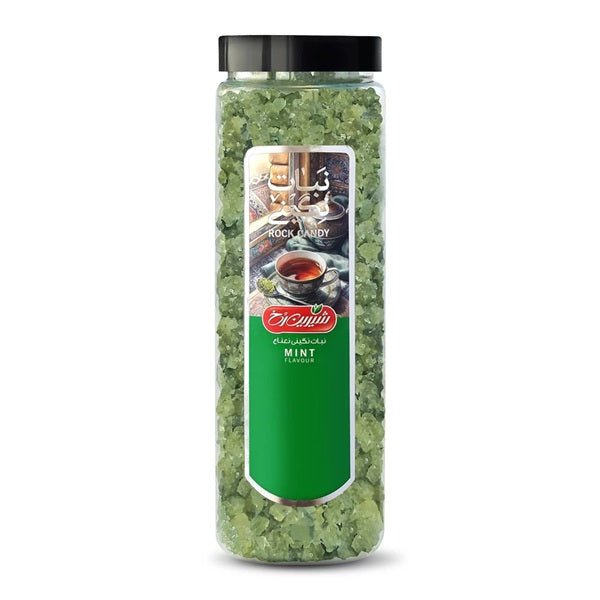 Shirin Rokh Mint Rock Candy (500g) is a refreshing, mint-infused sweet, perfect for dissolving in tea or enjoying as a traditional treat.