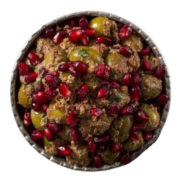 A bold Persian mix of Roodbar olives, pomegranate paste, walnuts, and garlic — made fresh in-house. Tangy, savory, and addictively delicious.